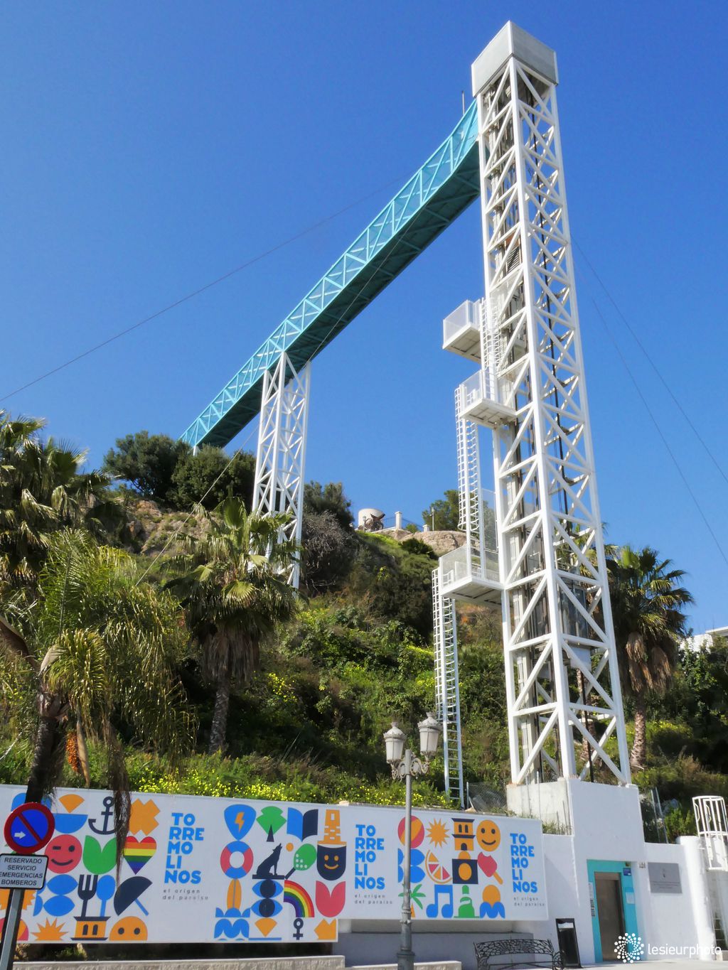 Magnifique vue de la cage de l'ascenceur et sa passerelle qui nous ramène du Parc de La Bateria, cette baterie que l'on peux apercevoir la haut près de la tour.