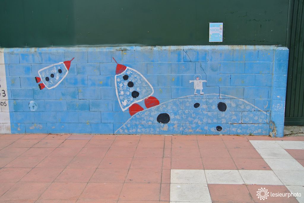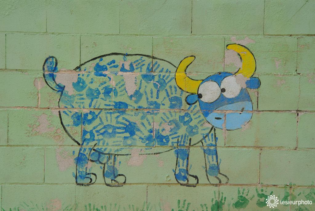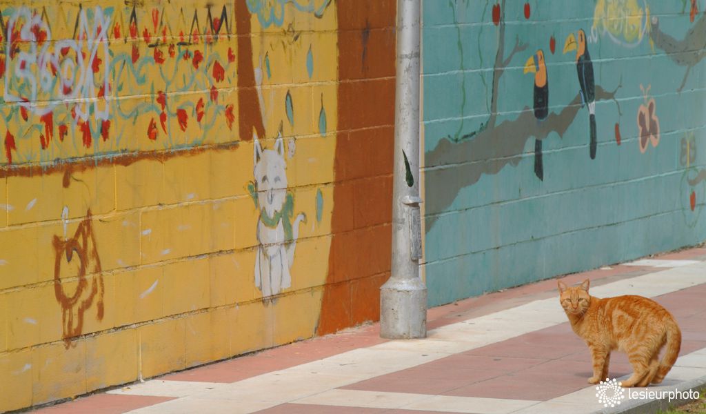 Ce chat m'a ensuite suivi tout au long de ma promenade, j'ai vite compris qu'il voulait me montrer cette exposition de dessins d'enfant sur les murs de l'école.