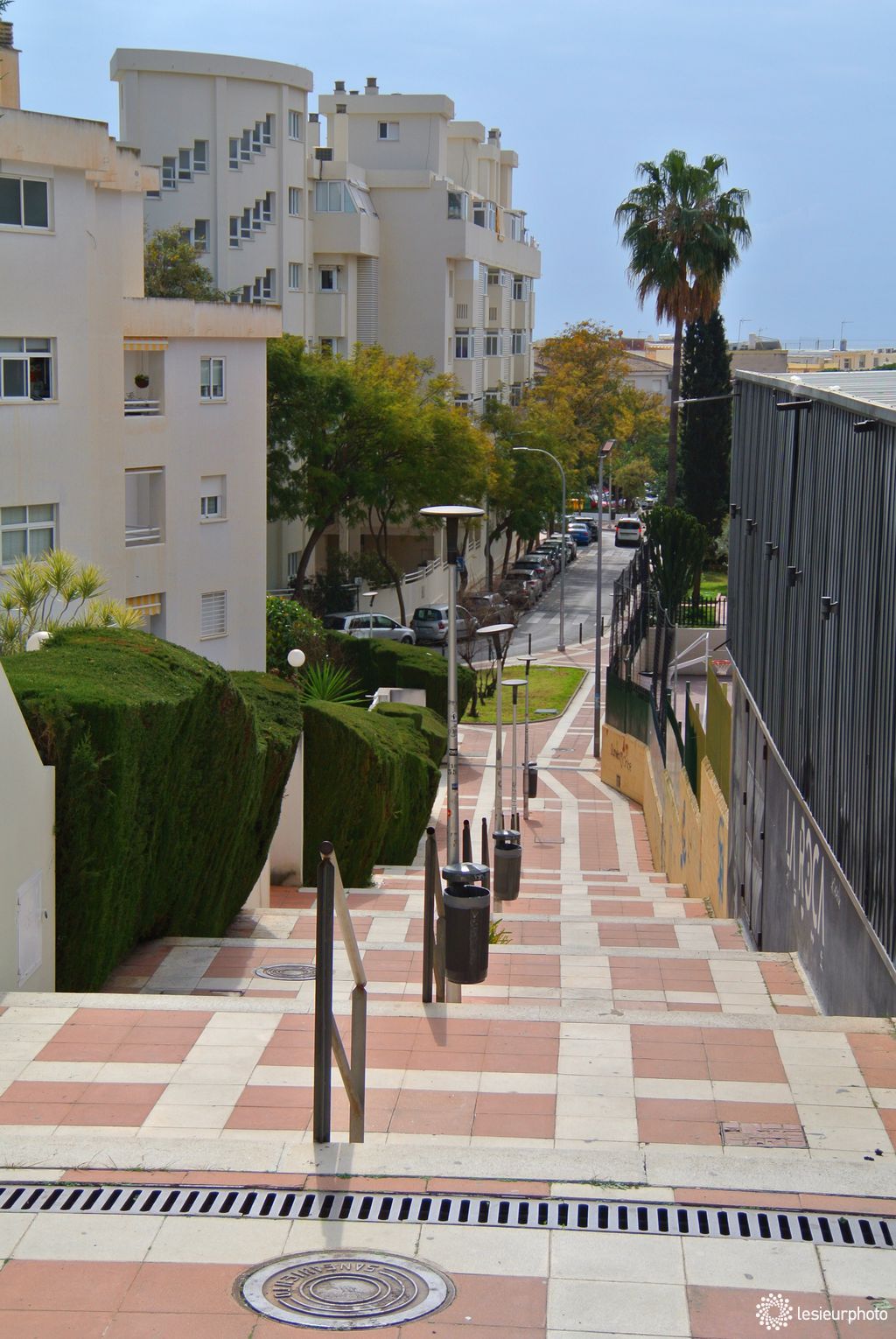 A me promener dans le parc, j'ai pu y trouver un petit escalier bien caché, qui menait à celui-ci afin de me ramener à la promenade maritime de La Carihuela.