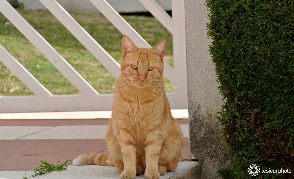 Tout en bas d'un long escaler ce chat à l'air sévère m'attendait.